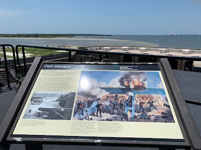 When standing in this spot you can see Fort Johnson, the fort directly south of Fort Sumter, which fired on the fort.