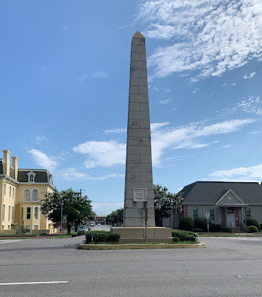 The monument, dedicated in 1848, is located at Greene and Monument Streets in front of today's Augusta Municipal Center, which at the time was the location of City Hall. It is made from granite and measures twelve feet square at the base and tapers to a height of fifty feet.