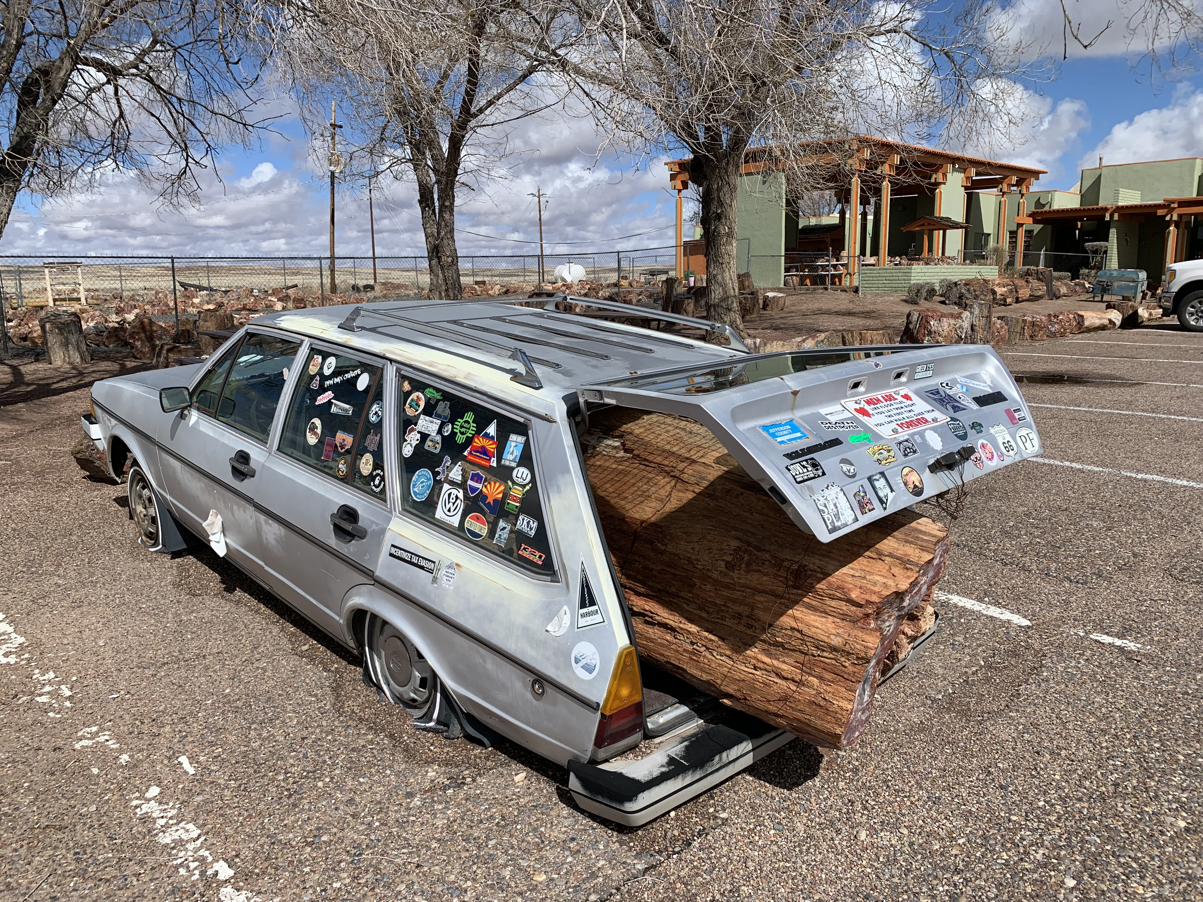 We stopped to check out the Agate Bridge, originally called Natural Bridge, which is a partially exposed petrified log spanning a gully of Agate Mesa forming a "bridge".